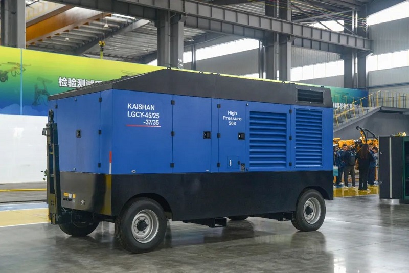 會議還安排與會者前往開山重工宜昌工廠實地考察,在嶄新的廠房內,一臺安靜運行著的250kW、8bar排氣壓力的磁懸浮四級壓縮離心空氣壓縮機成為明星產品,出色的表現得到了參觀者極高的評價。開山還展示了鋰電池新能源移動空氣壓縮機、應用于海外高端工程市場的全新設計柴油引擎螺桿空氣壓縮機、變節距干式真空泵以及智能鑿巖機器人等產品。大家對開山的創新能力和領先的高新技術產品贊不絕口。