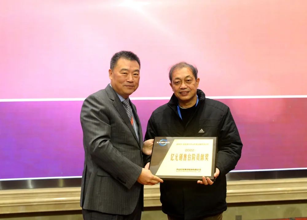 會(huì)議還向23位優(yōu)秀經(jīng)銷商頒發(fā)獎(jiǎng)牌。值得慶祝的是,2022年在較為困難的經(jīng)營環(huán)境下,誕生了開山歷史上第一家年度銷售額過億的經(jīng)銷單位:宜昌博力開山機(jī)電設(shè)備有限公司。